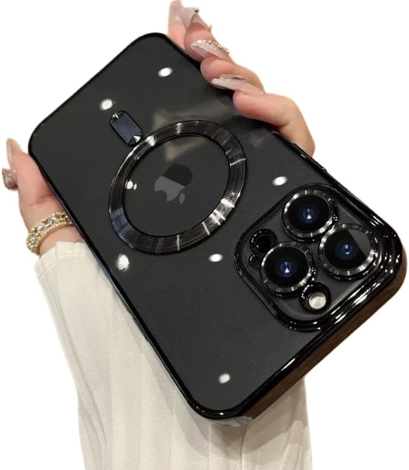 Luxury Transparent Magnetic Wireless Charging Mobile Phone Case with Lens Protection Film (Black) | Item #BB203