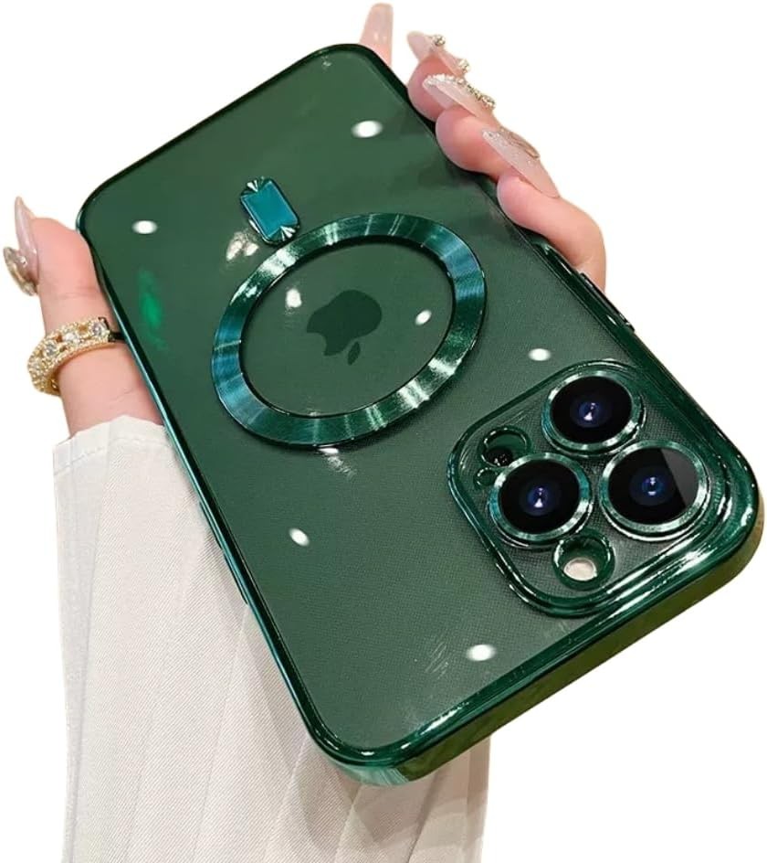 Luxury Transparent Magnetic Wireless Charging Mobile Phone Case with Lens Protection Film (Green) | Item #G92